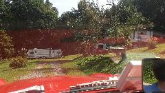 Early afternoon we finally hit the road again. The picture shows a typical heavy wire fence to protect the roadway from rock slides. This is south bound on WV-2 on east side of the Ohio River, rock mountain on left and river in the right. On this road we encounter rather boring expressway traffic, or more often slow congeston in the cities along the river. The geography is okay, but not my idea of a great drive. Not destined to go very far, we fill the fuel tank and stop at McD's in Moundsville, WV, for WiFi. Lots of catching up this time, updating a couple of club web pages, responding to a few email messages and some BBS subjects, and posting photo and notes on this trip log web page. Where has the day gone? Now time for dinner, and figuring out where we stay tonight.