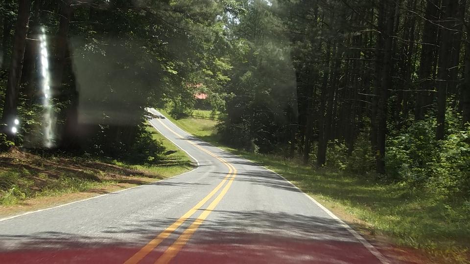 Side trip today, about 55 miles from Statesville to King, NC. A daylight trip with no rush at all, so we told Mapquest to take the shortest route. 25 miles east down I-40 we turned northeast and ran 30 miles in 15 different side roads through the woods and hills (including a couple miles of gravel road), a very pleasant drive with top down on a nice warm cruising day.