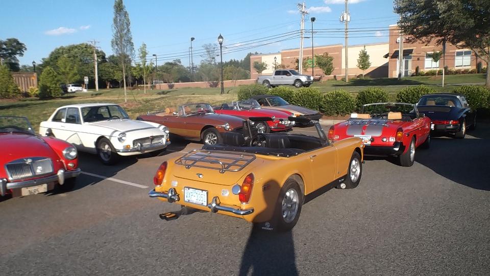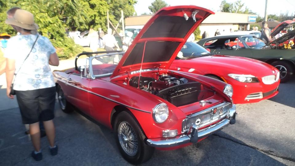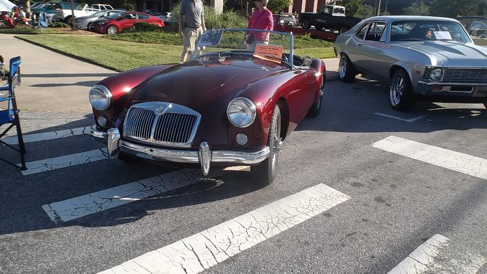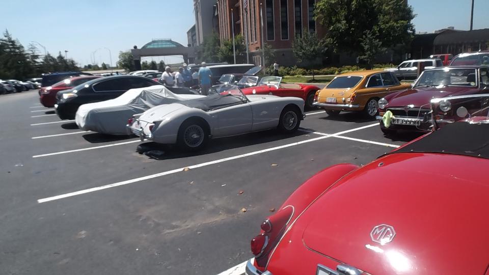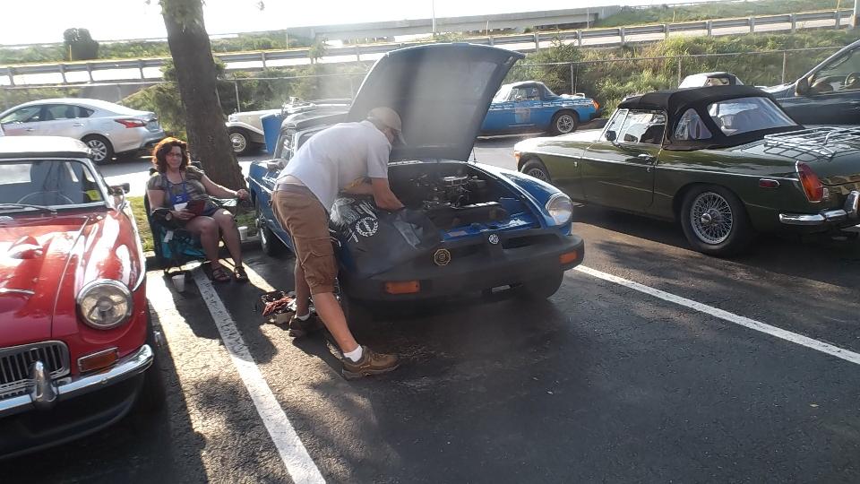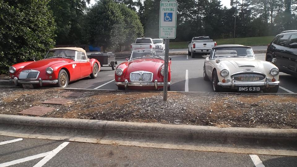 there was a distressed MGB in need of assistance, before we even got out of the car. Running badly on three cylinders? Easily fixed with a spare spark plug from my tool box. Then I was snapping pictures of MGA while walking toward the hotel, and whatever other cars might fall in the background. Count at least a dozen MGA in 100 feet, and there will be many more at this event.