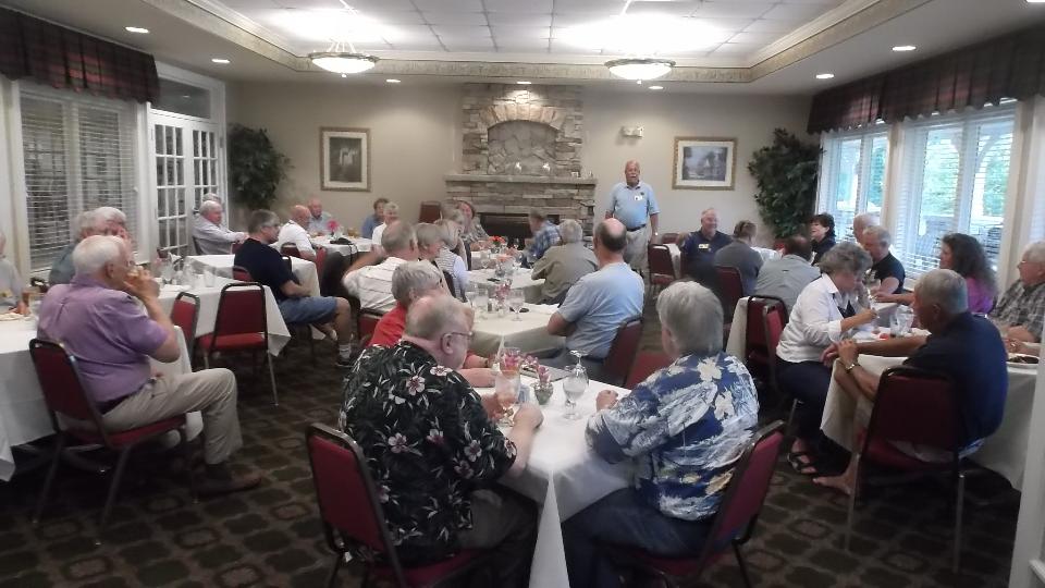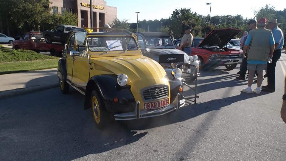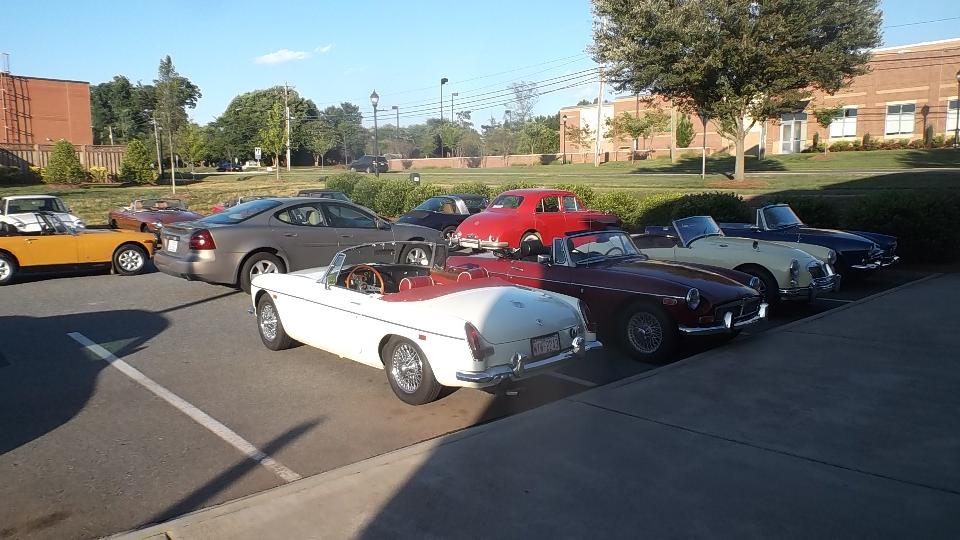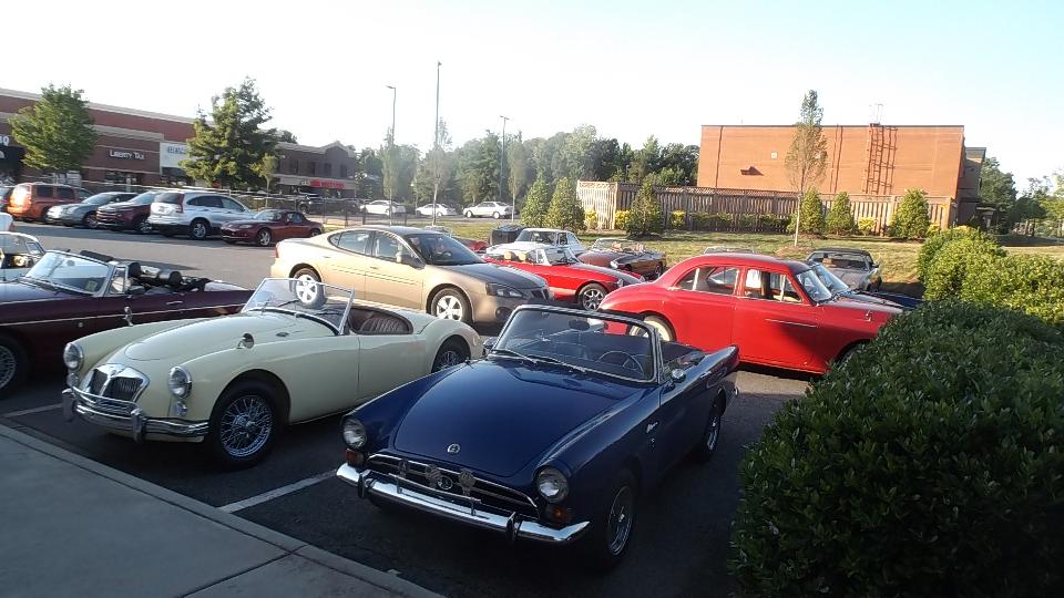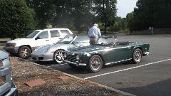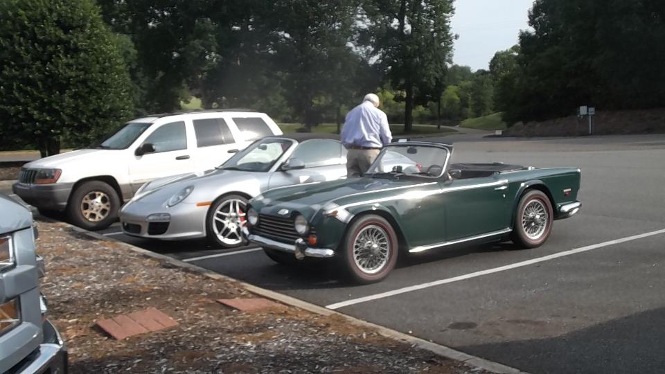 After spending most of the day on WiFi, we were off to Shelby, NC for a dinner meeting at Deer Brook Golf Course and Restaurant in Shelby, NC with Broad River European Motor Club. About 40 people here, reportedly a good turn out for this club. The Guru got to entertain the group with travel tales for a while, well received I recon. Several classic cars present were mostly British (although there were some other non-British European cars in the club to justify the club name). We were first in and last out, so I may have missed some of the cars. At least one red TR6 got away in a flash before I could get the picture.