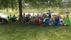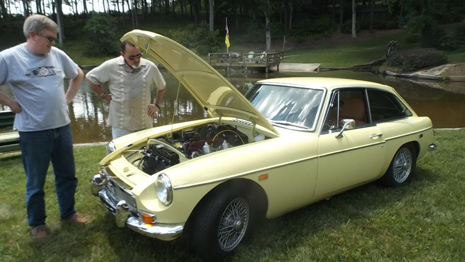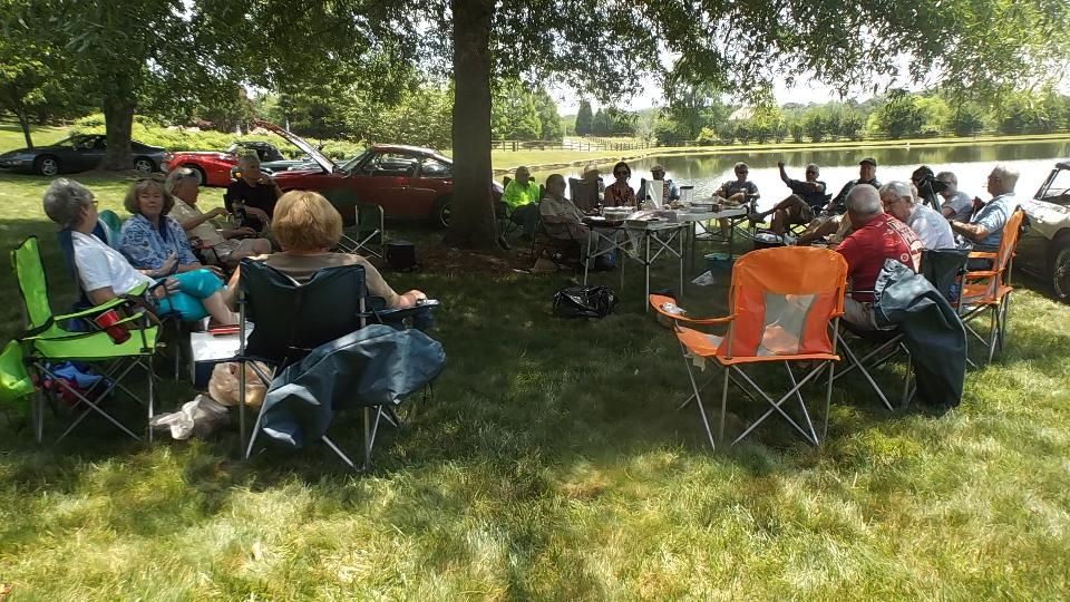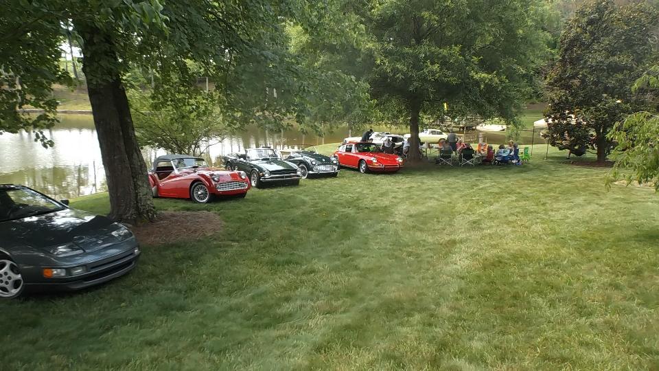 Today the Broad River European Motor Club has a "picnic at the pond" at the home of Curt & Missy Holland in Bessemer City, NC. Temperature of 90dF and bright sun made it a wonderful day for two dozen people to sit in the shade enjoying picnic lunch and chatting about the cars.