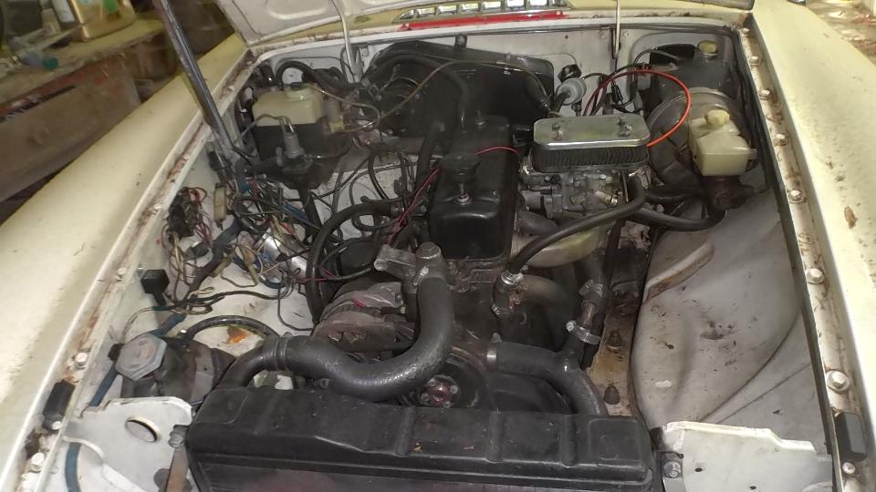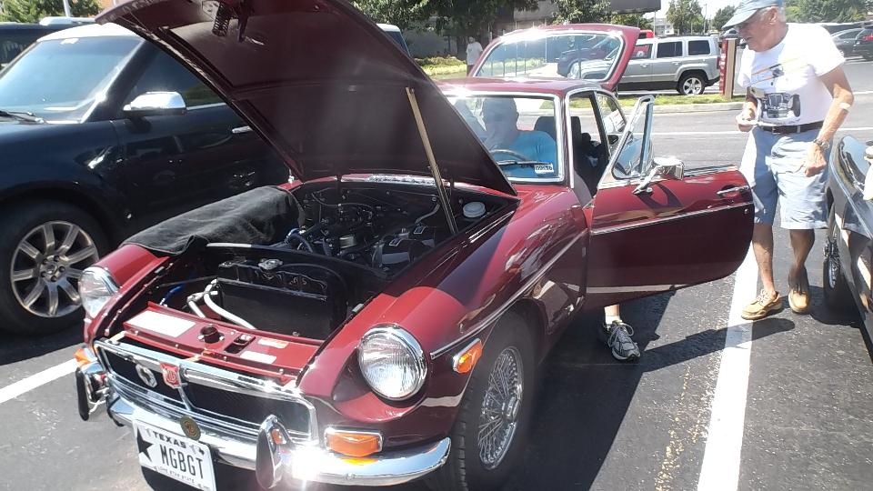 The car needing help today was a 1978 MGB with lowered suspension, Weber carburetor, and an older repaint. This was his son's project car, but the project was stalled when no one could get it to run. It was reported that the previous owner also could not get it to run. It would start and run (barely), but would die when the key was returned to "RUN" position. This implies bad ballast resistor, or something related to that circuit.