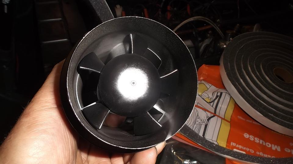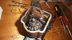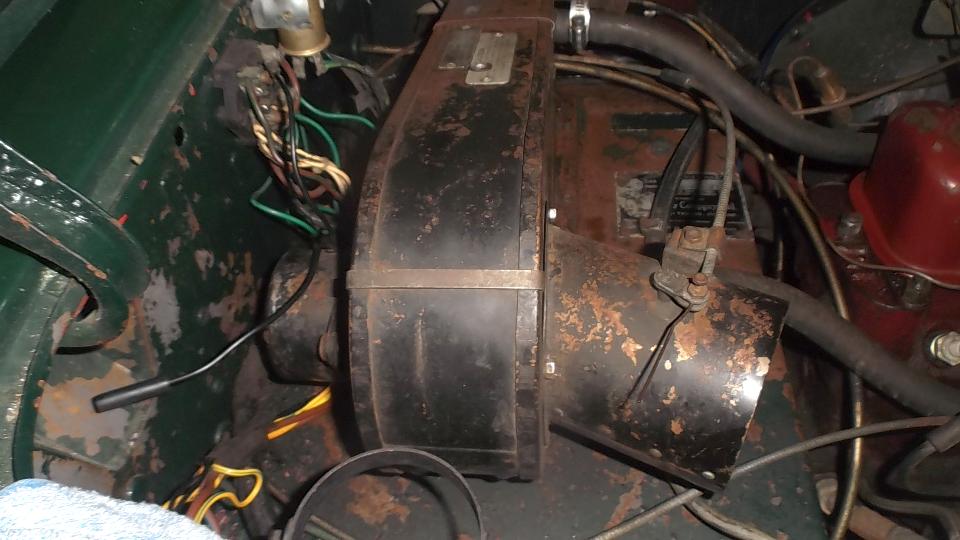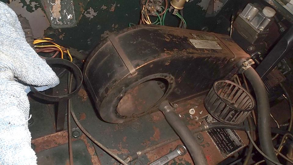 Then we were after the heater blower motor that would not run, even with jumper wire and grounding. Another half hour disassembly chore to remove three screws in front for the inlet duct, then the collet nut to remove the fan, and three more screws in back for the motor (the bottom screws being a bear for access). I thought the motor was going to need new carbon brushes, but once it was out and cleaned up and spinning freely it would run again with electrical power. So bruise a few more knuckles putting it all back together again. And for the final fix we had to solder a wire back onto the blower switch.