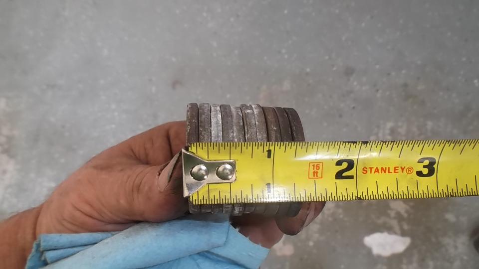 For reference I stood on the spring to measure partially compressed height with 220 pound load. This came to 4-1/16, or 1-1/2 compression, for spring rate of 147-lb/in, versus original spec of 125-lb/in. Again this may be bad (at least not so good), as higher spring rate will make the car sit higher under load. With design load of 450-lb the spring should deflect 3.6-in to be straight (flat) when fully loaded. With the higher spring rate 450-lb will deflect it only 3.06-in. This will leave it 0.54-in too high, to which we add the 1/2-in excess free height, so in assembly it would sit 1.04-in too high. This is exactly what other people have been reporting for years, sitting 1-inch too high. The proof is in the pudding, so let's give it a try.
