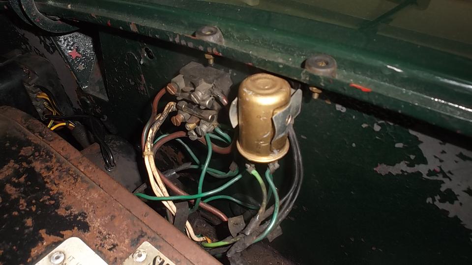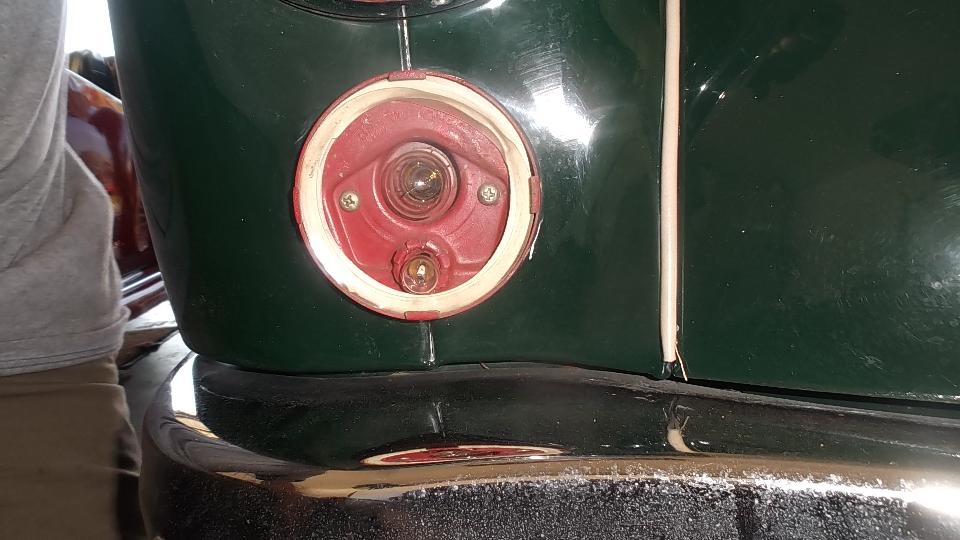 Today we were back at Dave Daniel's place to do some work for his MGA, mostly electrical work. Start by replacing a couple of light bulbs and cleaning socket contacts, getting all the external lamps to work. That front lamp should be bright zinc, not red painted, so consider replacing those and all of the rubber gaskets.