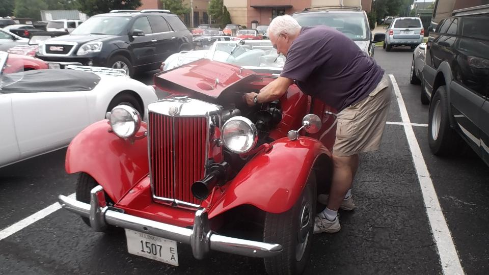 Having taken care of registration issues it was off to WiFi (and cooling) for a bit, followed by a short side trip to visit Jeremy Nelson. This is the son of Eric Nelson in Zionsville, Indiana. He has an MG Midget (under restoration) and a Triumph Spitfire (which may be in better condition but is also a distraction from the Midget project). More on these cars later.
