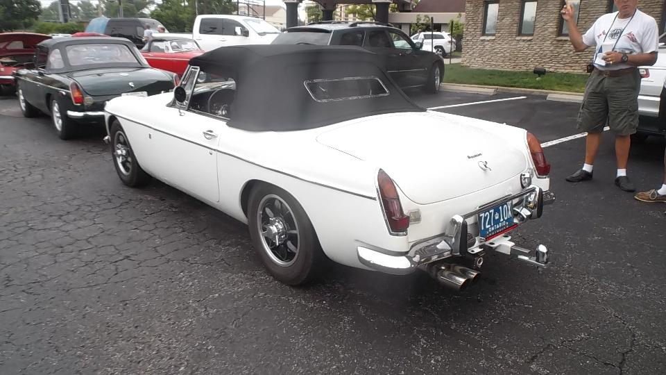 I took a quick stroll around the car park to find about 20 British cars, mostly MGs, including a ZB Magnette (and one Porsche 911). The big gray thing in the middle may have been a Pontiac G8.