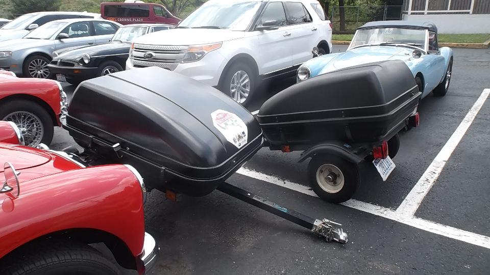 Morning tech sessions, "Why Did They Do That?", and "Originality of the MGB", followed by another walk in the car park. Hey, twin trailers; I wonder if they travel together?