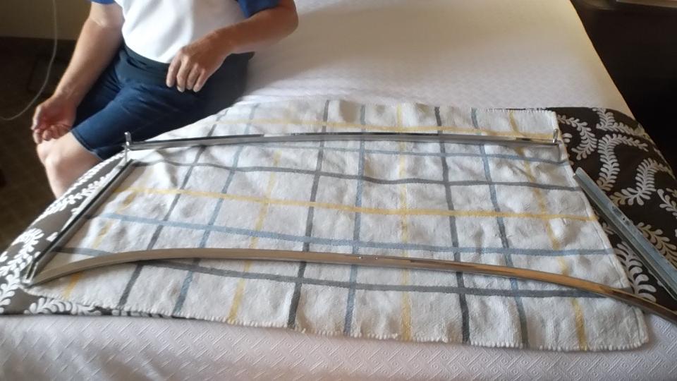 Then a tap on the shoulder, followed by "Do you know anything about MGA windscreens"? Off to meet Murray Shantz from Unionville, Ontario, Canada. While packing stuff on his luggage rack a bungee cord got away like a slingshot and broke his windscreen glass. An order from Moss Motors brought a new glass to the hotel. A quick trip to Harbor Freight netted a few extra length screws and some web straps to assist holding the frame together during assembly, and we were well into reassembly.