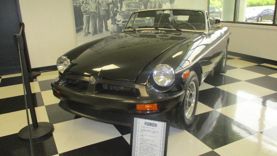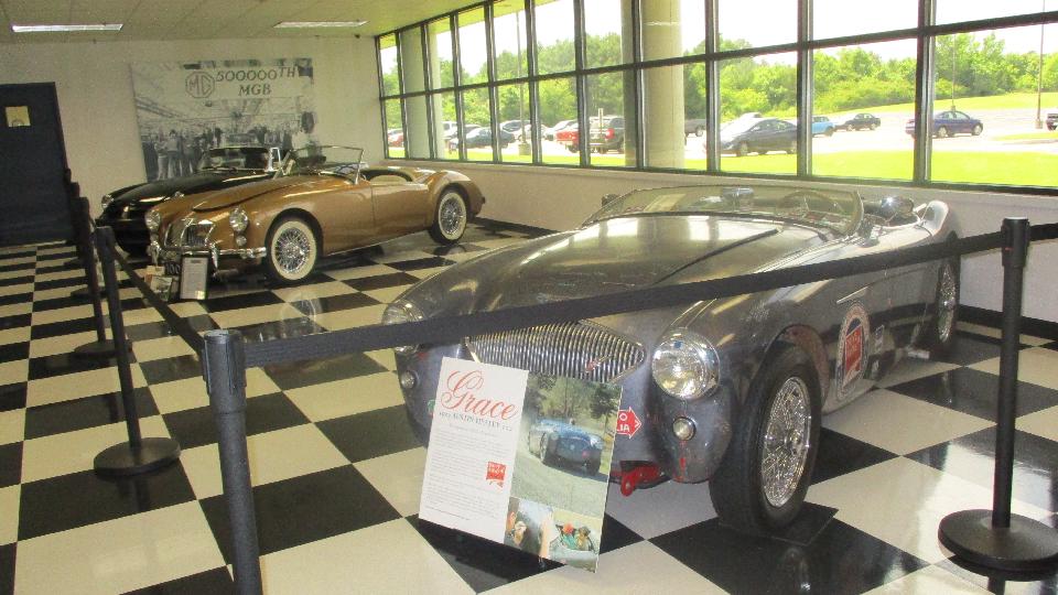 Today we were back at Moss Motors on Petersburg, VA (for maybe the 5th time in two years) to pick up a small assortment of service parts. Cars on display in the showroom change some from time to time, but always something interesting here. First up is Grace, the Austin Healey 100 that spent a few years cruising around the country on a charity drive. Last I saw her was nearly two years ago at Hendrix Wire Wheel in North Carolina. Next in line is MGA 100,000, which has been here before and is well documented elsewhere on this web site. At the far end is the 100,000th MGB produced, now sporting 80 original miles on the odometer, all of the original fluids, and possibly the original English air in the original tires.