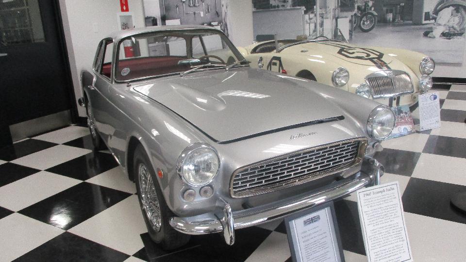 On the left side is the Moss Motors MG TD pickup truck built in 1953, well traveled, and I believe still used occasionally. Next is a 1960 Triumph Italia (later re-badged as the Italia 2000), built on a TR3 chassis. And finally the 1957 MGA ex-Sebring car, the only one (of three entered) known to still exist.
