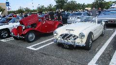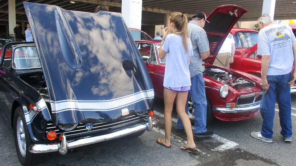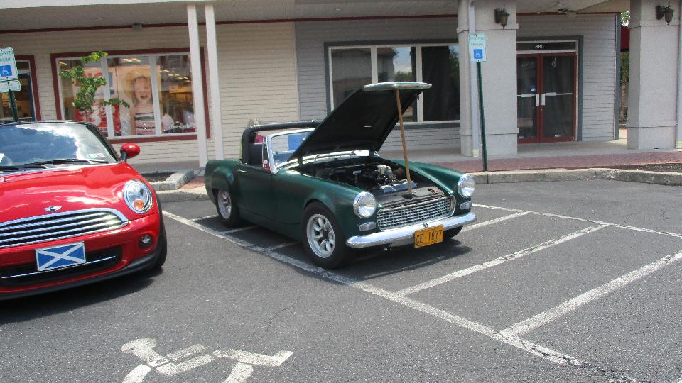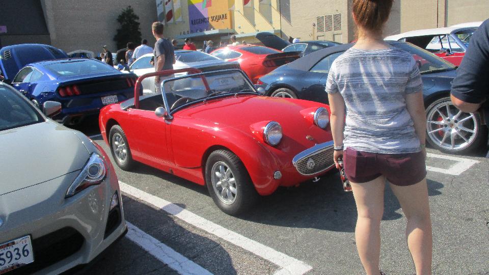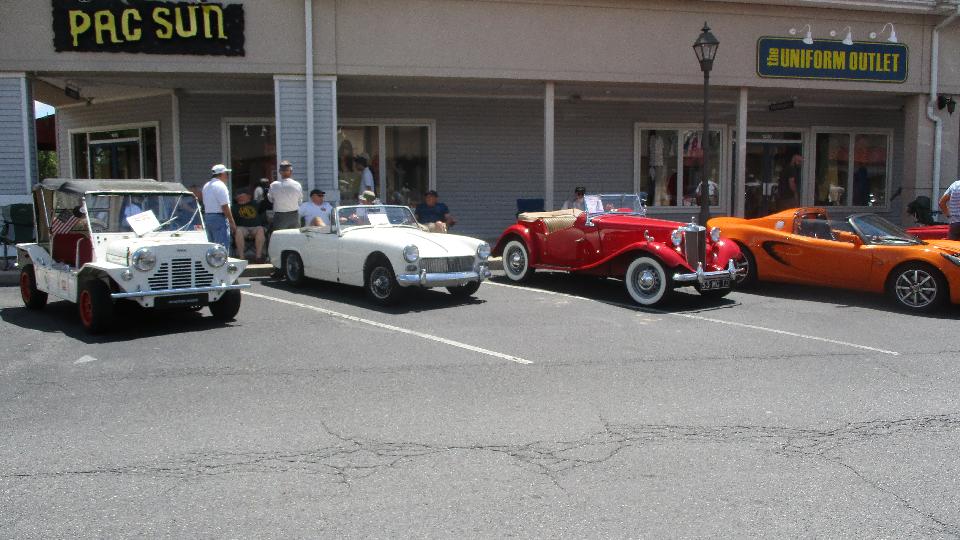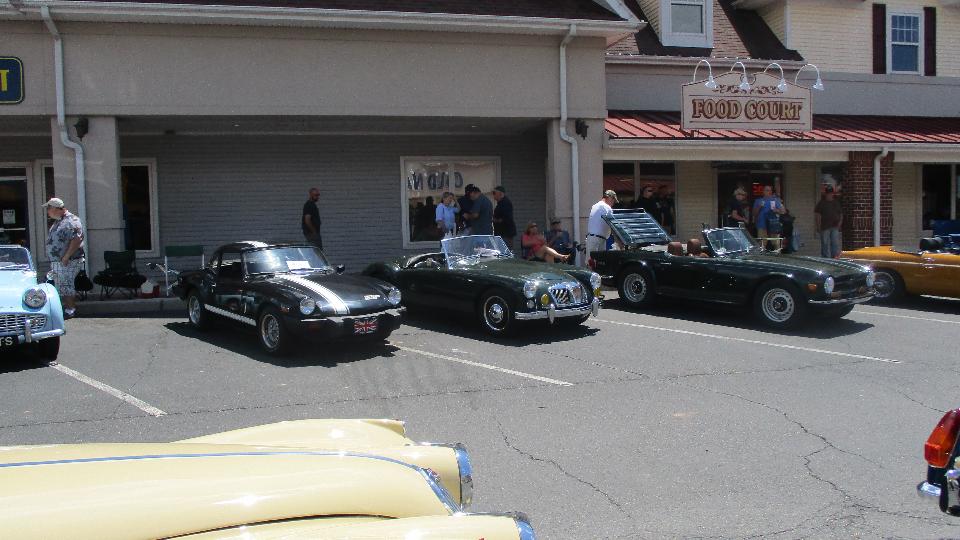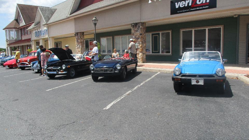 After the bug-eye Sprite I finally found what I was looking for, a contingent from the Central Virginia British Car Club. They have a club meeting near end of each month, but we will likely be out of state by then, so I was interested in meeting these folks now. We may yet get to one of their cub meetings a few months later.