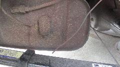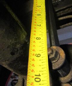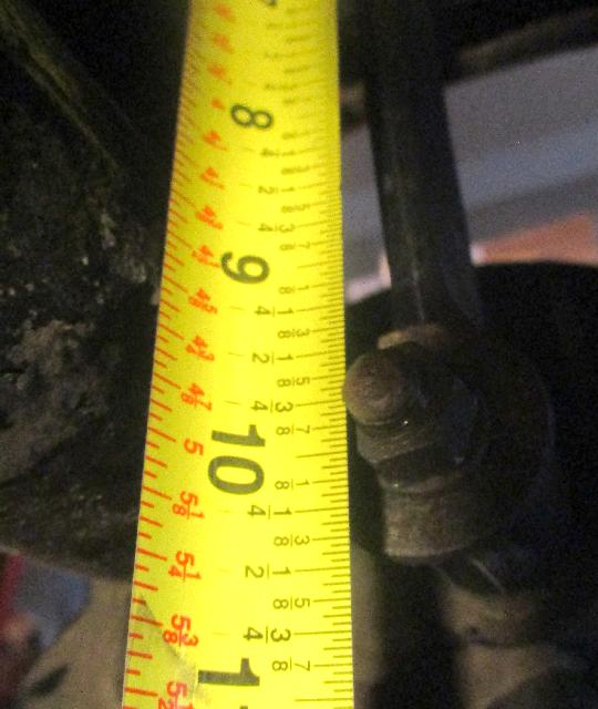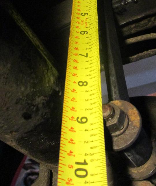 Meanwhile, there was some pressing maintenance to do on my car, beginning with installation of the new rebound straps. You may recall two months earlier (May 3) I had installed new rebound straps (purchased October 2014). Then a month later (June 8) I installed new leaf springs. At that time I discovered that the new rebound straps would stretch pretty much without limit until the shock absorbers hit end of travel with axle drop (meaning the new rebound straps were useless). A couple weeks later (June 18) I installed new rear shock absorbers, so now it is urgent to have serviceable rebound straps to protect the new shocks from over-travel damage. So today I installed current issue rebound straps from Moss Motors. In the pictures the tape measure is hooked over top side of the upper strap mounting stud on the frame. With the rear axle supported at the point where the rebound strap is straight but unloaded, the length between studs is 8-3/4 inches (correct length for these MGA straps). When the axle was allowed to drop the straps stretched to 9-5/8 inches with almost 1 inch stretch. This is not even with dynamic bounce conditions, just gentle lowering of the floor jack. While this is not as bad as the prior issue straps, it is still unacceptable amount of stretch (and I suspect they will stretch more with use). So this is not the end of the story, as better parts must be found.