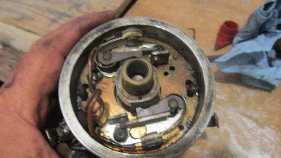 Then a couple routine maintenance chores. First install new contact points in my Mallory Dual Points distributor. Maybe I shouldn't have wasted the time and money, as the old ones only had 90,000 miles on them since December 2012. They really were in pretty good condition.