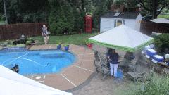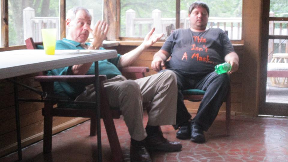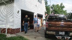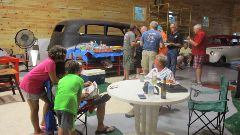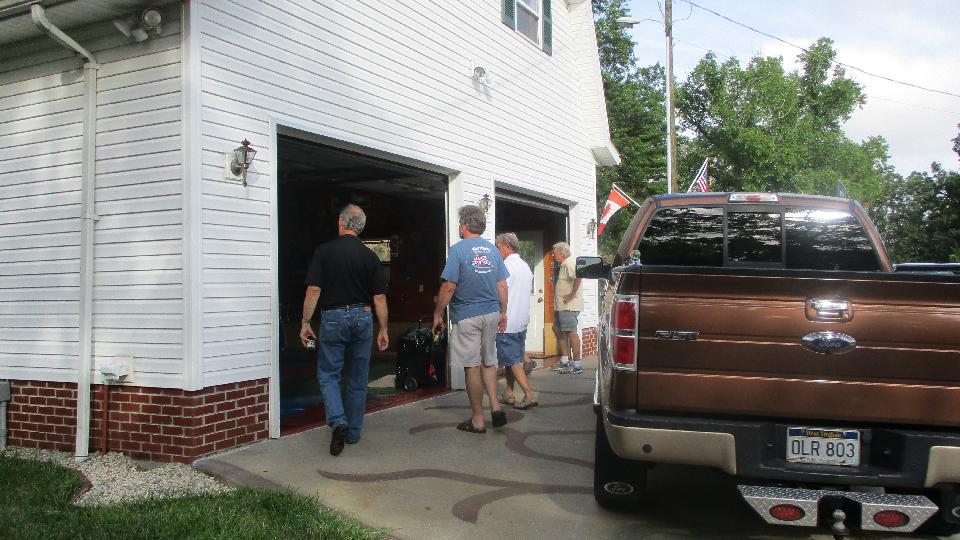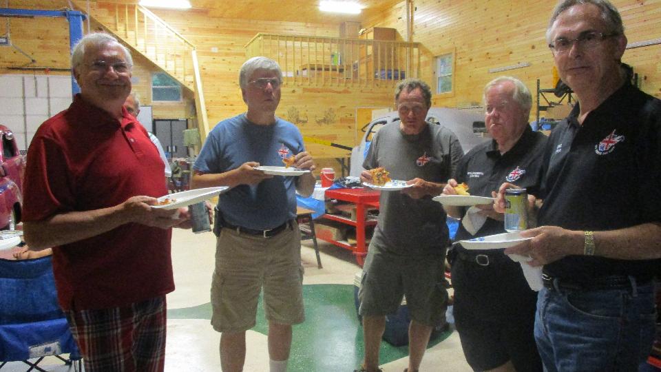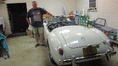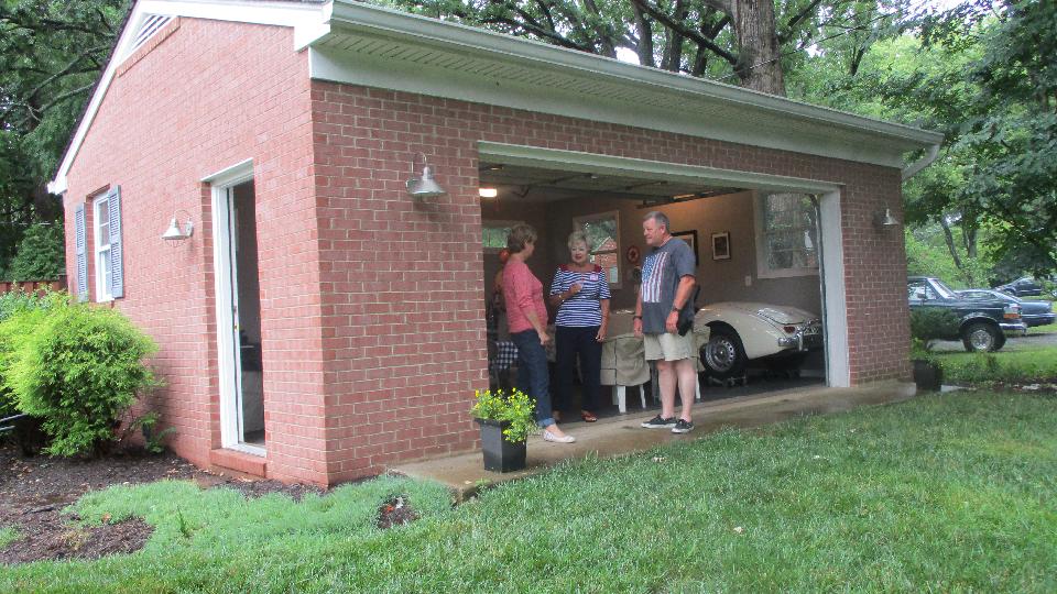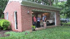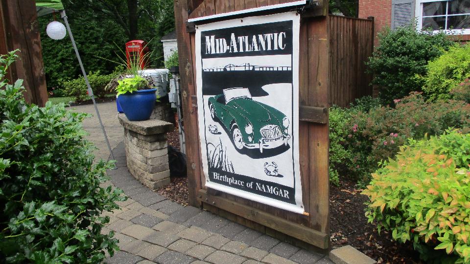 Today a trip to Manassas, Virginia, to meet with Mid Atlantic Chapter of NAMGAR at the home of Bill Marshall. As the poster says, this is the birthplace of NAMGAR. I didn't count noses, but I recon at least 20 people once we were all gathered. The BBQ was good, and the camaraderie was great. We started in the separate garage with the MGA 1600-MK-II "Deluxe". Then we moved to the back yard for munchies. When it began to dribble a bit we moved under the canopy or on the porch.