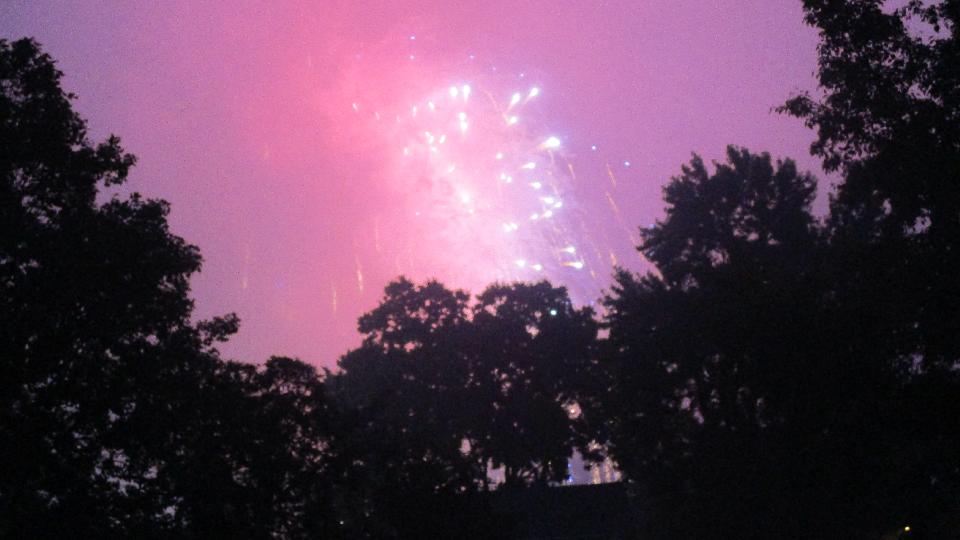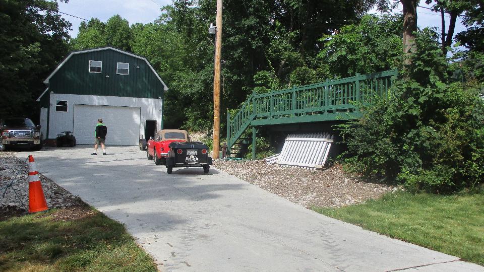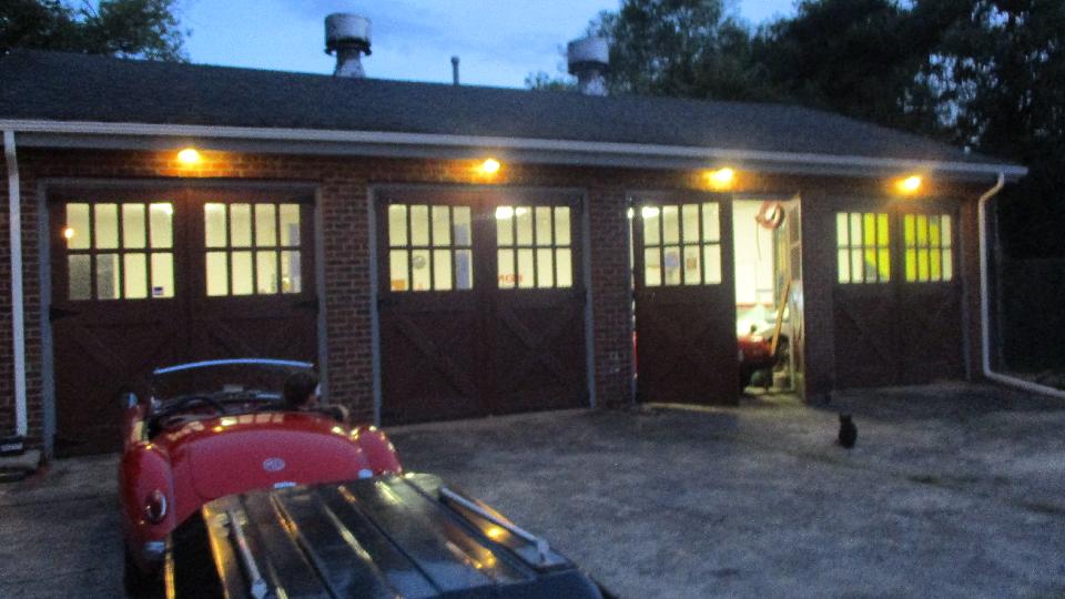 Then the rain stopped, right on que, and at 9-pm sharp lots of noise brought us all around to the front yard to watch the city fireworks. As the party was breaking up we got a peek into the garage under the house to check out the MGA 1500 and the Twin Cam parts car. Then late night we headed back south toward Richmond in preparation for a very busy day tomorrow.