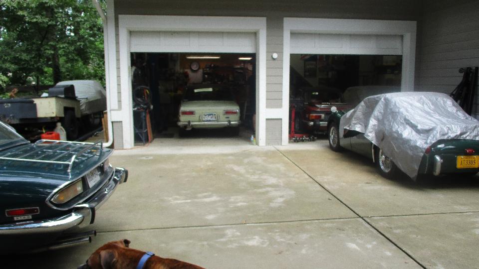 A little over 300 miles to the west we were in Barboursville, West Virginia, at the home of Don Gross. Our first encounter is with his "barn" style workshop, built one step down the hill side from his house. You might notice the building gets wider at the rear, and the rear is a long way back from the front. There is a car lift in the far back corner, and three more cars in the back (mostly hiding in this picture). His Spitfire seems lost on one side of the cavern. This place is kind of new, so I suppose it is only a matter of time before it will fill up with more toys.
