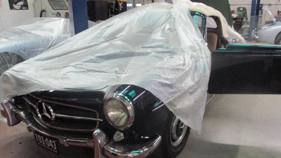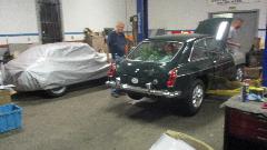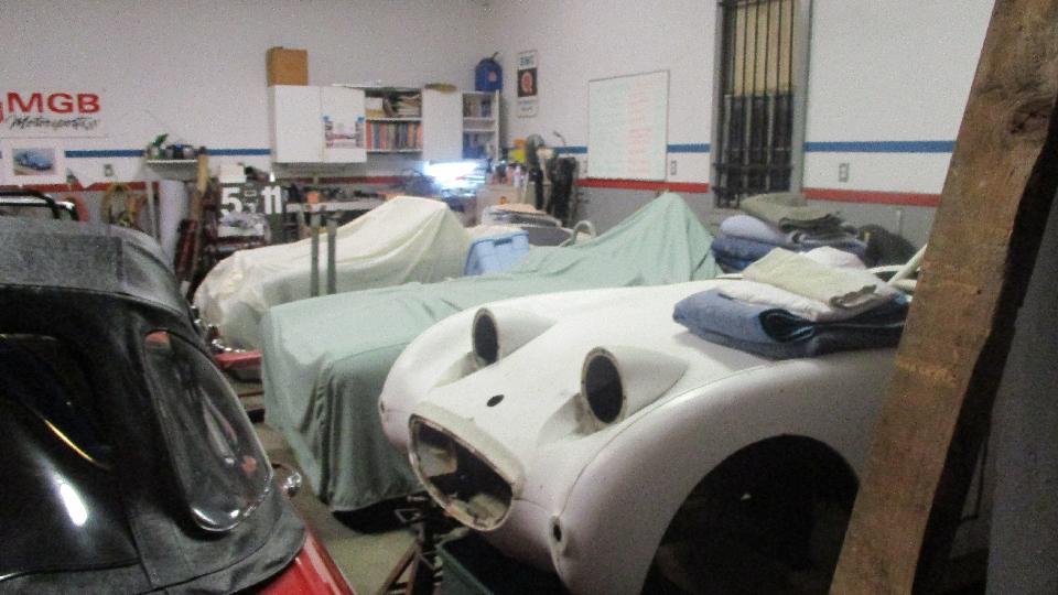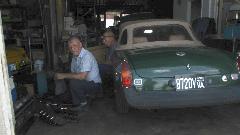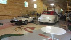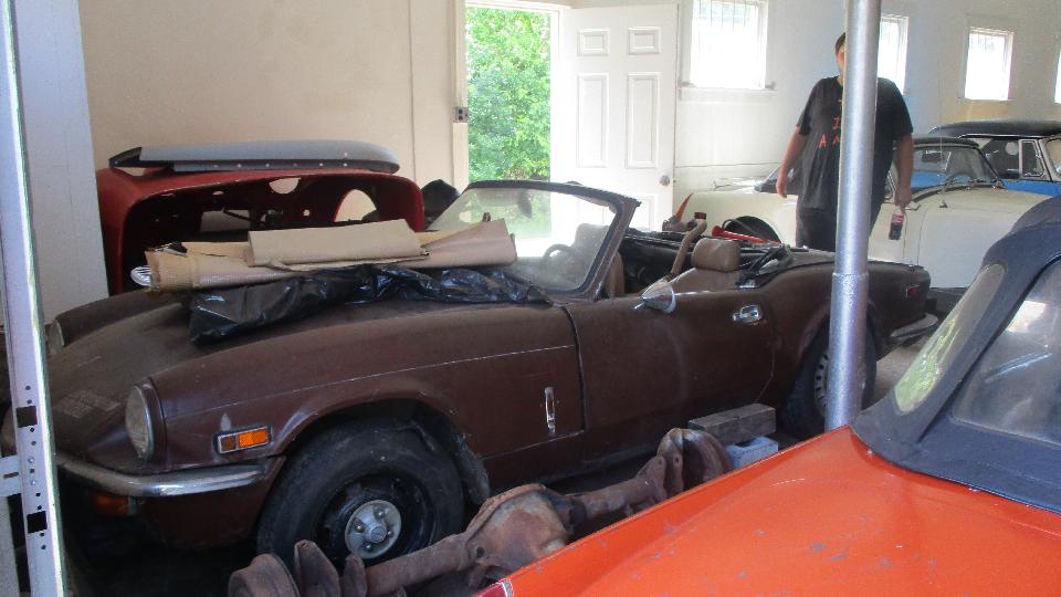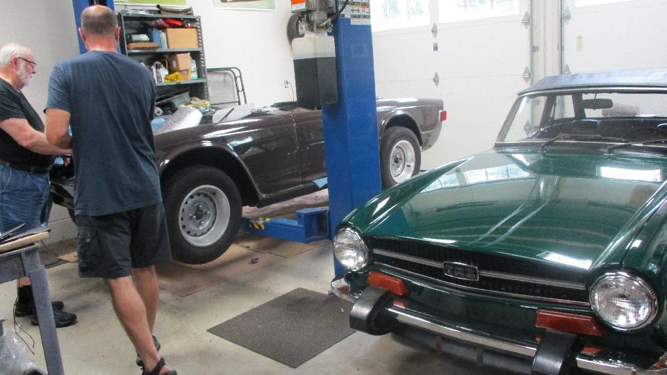 Chip is a specialist in Triumph TR6, but dabbles in some other cars occasionally. The brown one is a full strip-down restoration in process of reassembly. The green one is a fully restored customer car about ready to go home.
