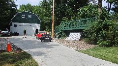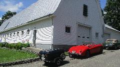 Today we dropped in to visit Bill Welborn in Burlington, NC, where we were soon joined by his brother Rick (with the blue MGB). Bill's red MGA 1500 (with front disc brake conversion) was laid up for some maintenance. First notice was that it has two 48-spoke wheels and two 60-spoke wheels (just a curiosity). The master cylinder was removed for some attention to copper sealing washers on the pipe fittings, so the car wasn't going anywhere today. Put a few a guys together to talk about cars, and nothing gets done for the rest of the day. At first sign of thunder the blue car disappeared, determined to get home before getting wet. About dark time we had to head out, having a four hour drive north for our next morning's appointment.