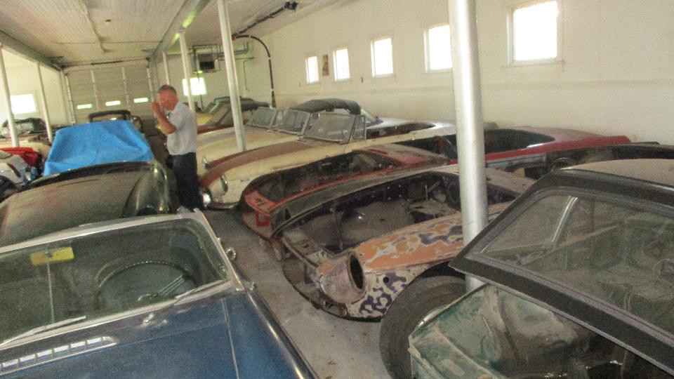 Aside from the cars in the shop here we also took ten mile run to the north to visit his warehouse. Count 34 cars here in various stages of restoration. They range from untouched project cars to fully restored examples.