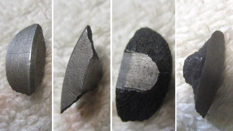 To top it off there is a mystery part that was removed from the oil pan. It is a broken bit of an iron casting or a steel forging, about the size of your thumb nail, nicely machined. The outside radius is a close match to radius of the crankshaft rear flange or crankshaft counterweights. But the crankshaft was not missing any such part, so it may have been left over from a prior repair. Anyone want to make another guess?