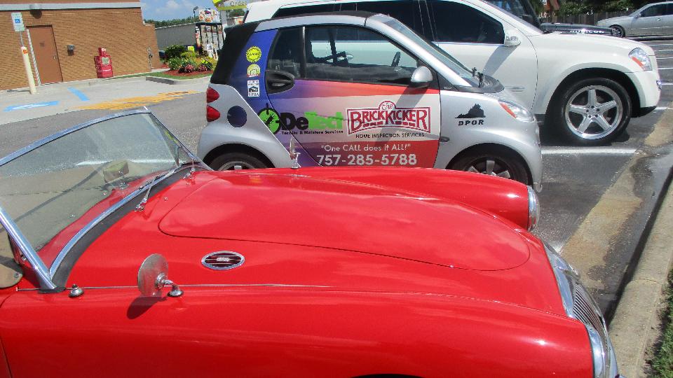 When when we stopped for a personal cool-down break we got to park next to something smaller than the MGA, a Smart car.