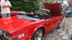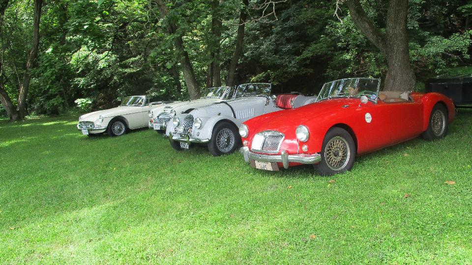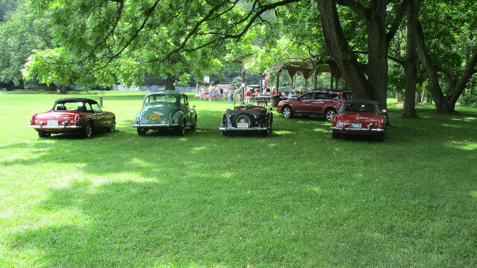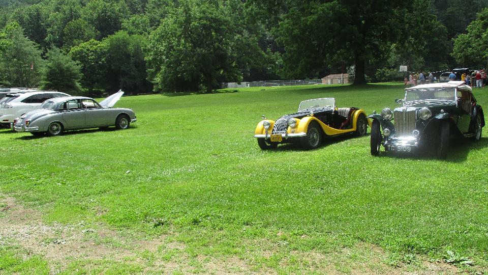 We couldn't miss this one. It was the once-a-year annual meeting and picnic for British Automobile Club of Southwest Virginia. So we drove the length of Virginia east to west yesterday to be here, and will have to drive back northeast the length of Virginia tonight to be in Gettysburg, PA tomorrow morning. For a while I wasn't sure this club still existed, as their web page is (in places) up to 13 years out of date with a lot of non-functional email addresses and phone numbers. I only received a phone call yesterday morning telling us how to find this group today. Nice bunch of people, about 40 club members on hand, but only a dozen British cars, which seemed odd to most of the Brit car drivers. Perhaps the folks driving the modern family wagons could explain the difference.