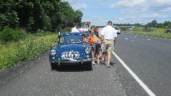 A short jaunt down the road we made a brief stop to fix the fuel gauge. Nothing serious, just a broken wire on the fuel lever sender unit. This was a result of the wire being a bit too short and just hanging where it could shake and finally break at the end terminal. Solution was to extend the wire so it could take a bit longer route for proper support and strain relief, and in 20 minutes we were back under way.