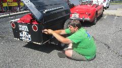First programmed stop today was Dominion Spares LLC in Reston, VA. Published address turned out to be a UPS store with a drop box number. Duh? One phone call set us on the right path, and ten minutes later we were visiting with Bill Rachal at his home based business in Vienna, VA. Dominion Spares specializes in replacement parts for TVR cars, which in many cases will share engines and some other parts with MGs.