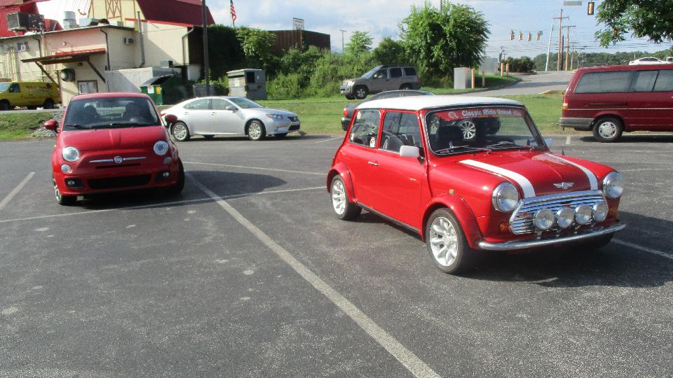 Then we were off for a two hour dash down the expressway to Kingsport, Tennessee for another evening meeting with Appalachian British Car Society. Arriving just a bit early, there were only couple little cars present, and leaving late we apparently missed other cars that may have been here in between. The meeting ultimately gathered about 40 people at Rush Street Neighborhood Grill for business and joviality. Guest speaker was something about investment counseling (but at least he drives a Mini and a Lotus Elite).