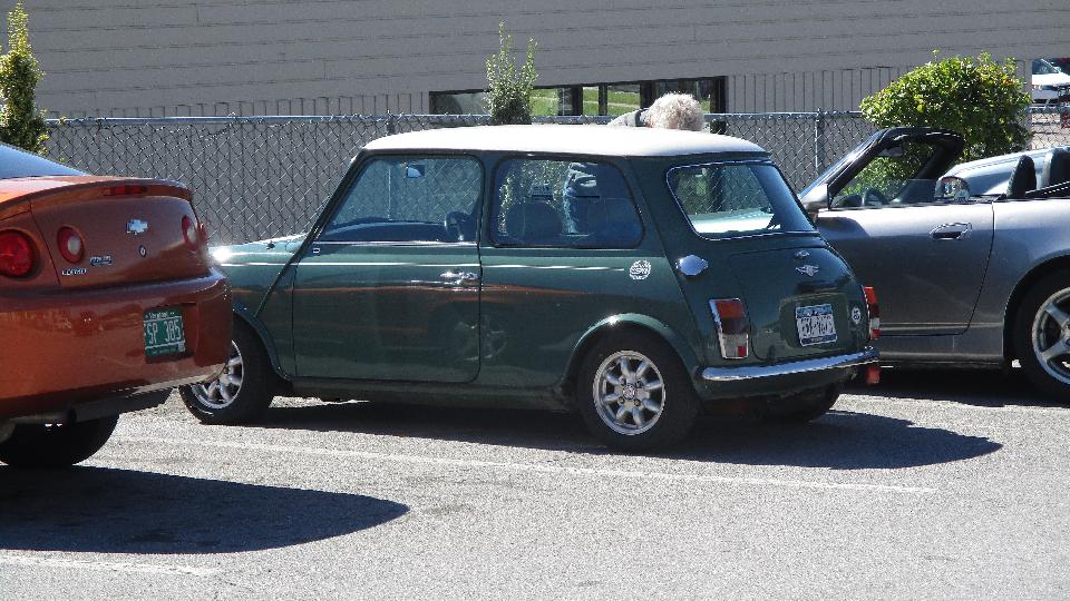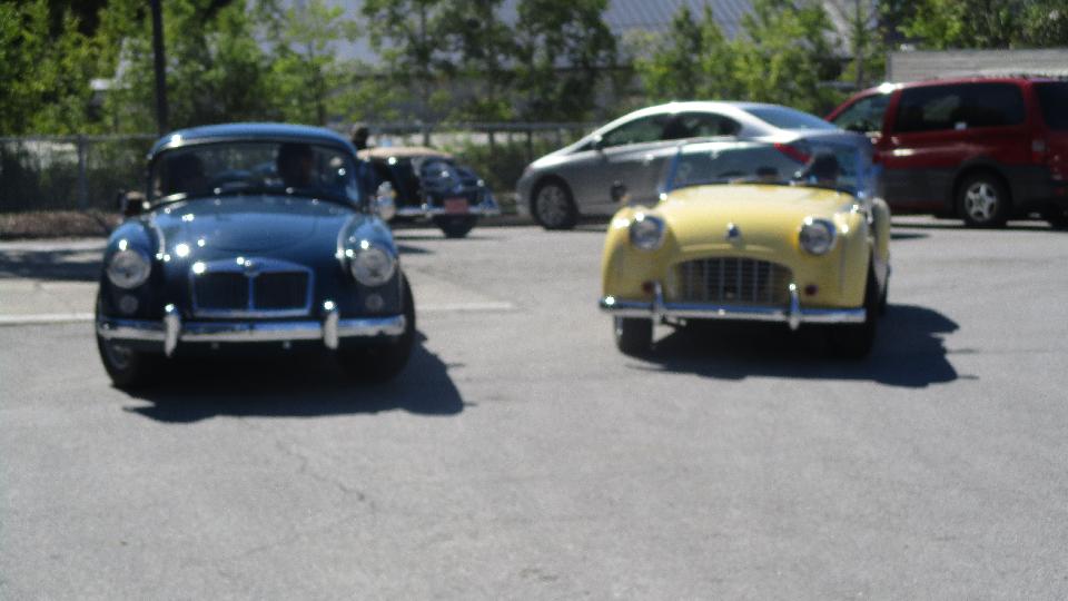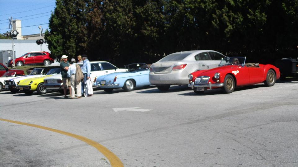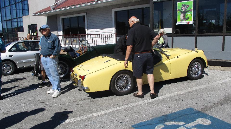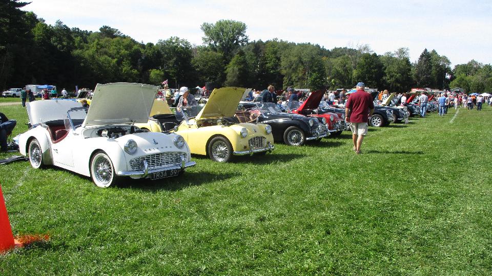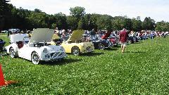 This would be a simpler and easier day. As we were approaching the show grounds we saw many British cars going the other way, escaping to go home on Sunday morning. When all were assembled on the show field there were maybe 25% of the prior days cars present today. The idea today was to park the cars in groups by color, to be voted for best car of each color. Not being a concours type, I seldom bother to vote, figuring I have better things to do with my time. But I did find some friends to chat.