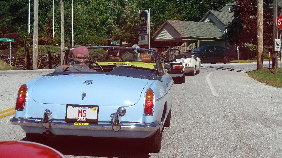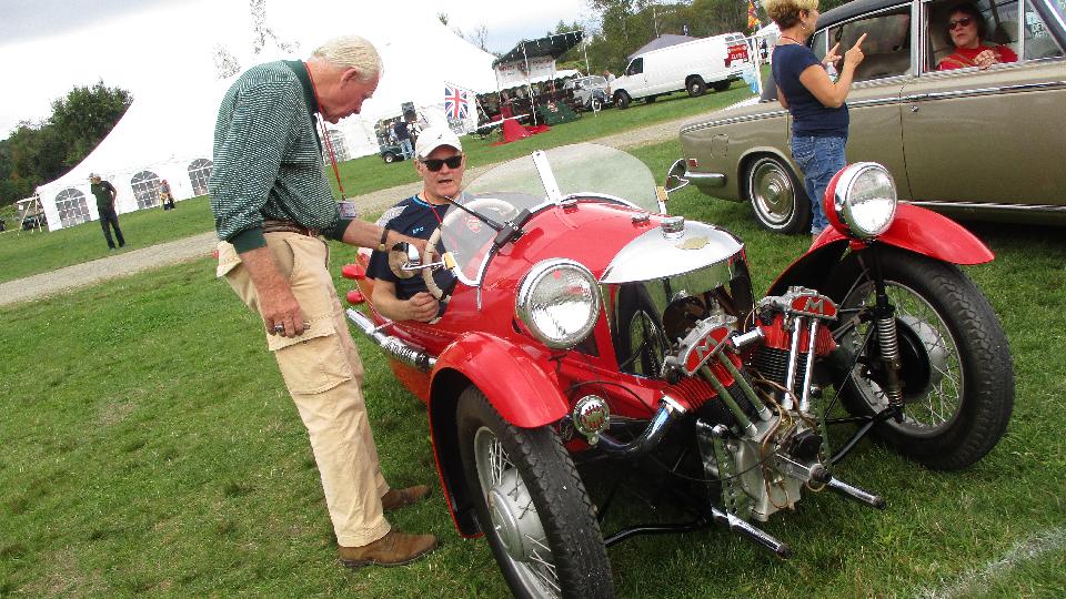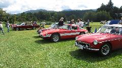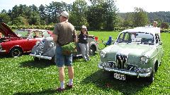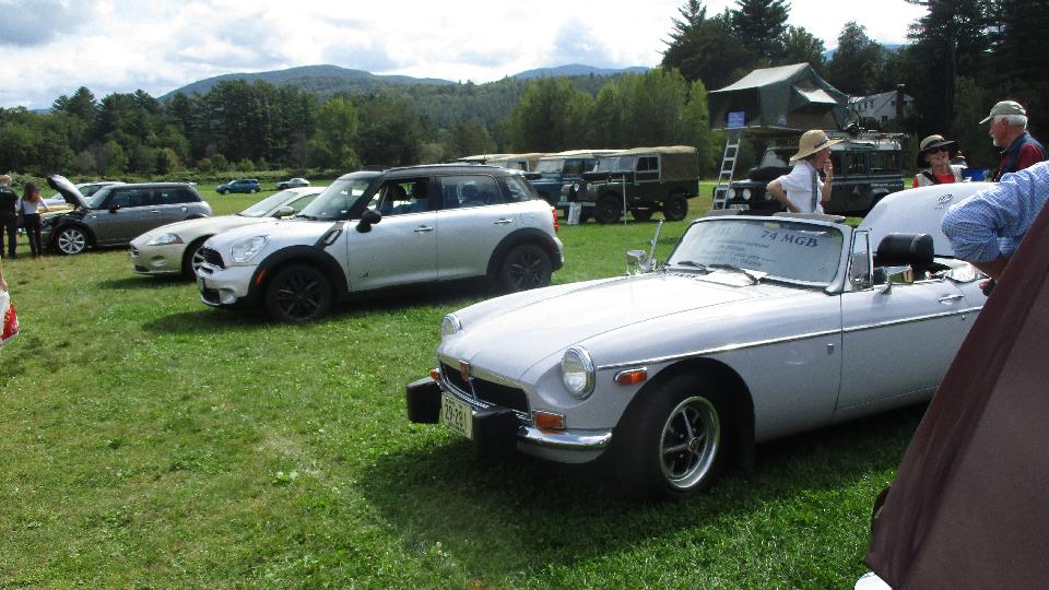 By 4:30pm we were back in Stowe for the welcome party. Hundreds of people here, and I don't recognize any of them. One person from a rally a couple weeks earlier recognized me and said hello. I finally found Richard Miller, director of MG Drivers Club of North America. I knew he had to be here somewhere, as this is their annual MG Drive-In.