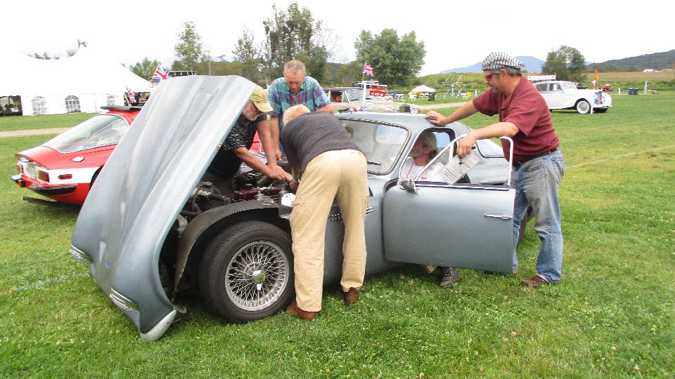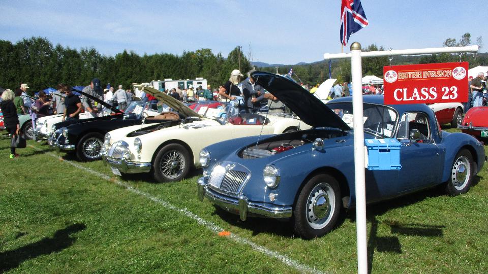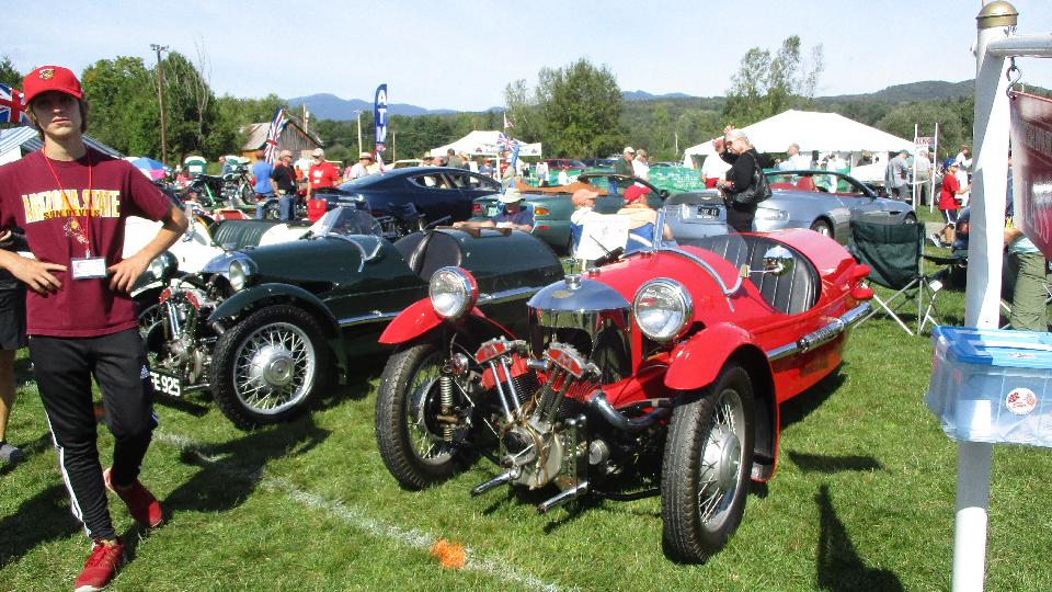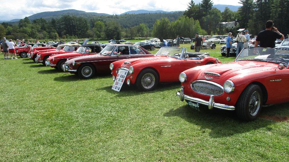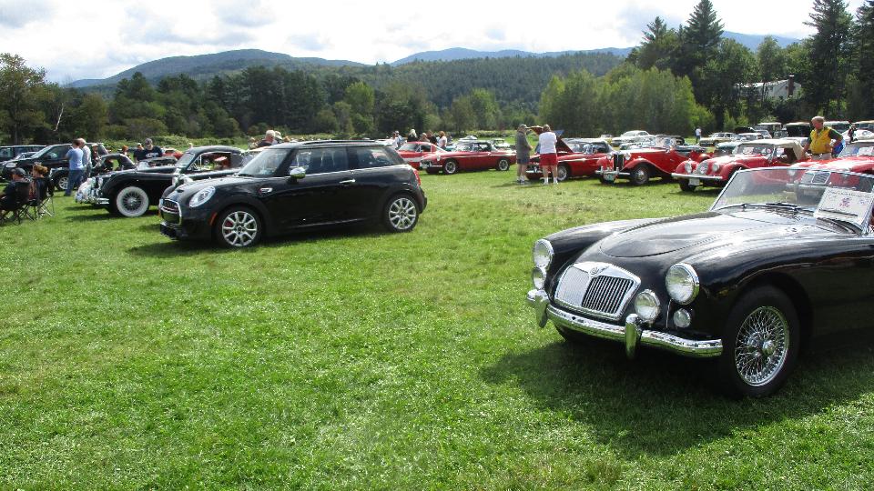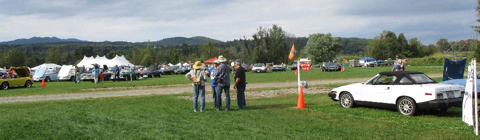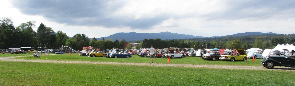A little pokey on side roads in traffic, about 50 miles up the road the Elva called a lunch break. Really? We just had breakfast. Let them stop. We turned it north and continued on solo, making better time. Soon we were muddling our way through Stowe, VT to find the show grounds and get registered for the British Invasion.