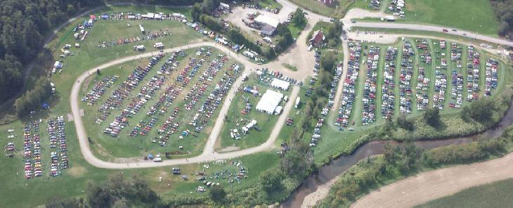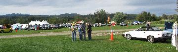 Car show! The British Invasion in Stowe Vermont. Conflicting reports, something like 560 cars on the show field, possibly that many more cars in the visitors and "unregistered" lot, and pictures, pictures, pictures. To right of center, spectators, visitors, and non-registered cars. In the middle, large tents are car show central, registration and some vendors. Upper left, more vendors and the car corral (cars for sale). Left of center, the large field of show cars. Bottom center was the concourse judging circle.