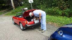 A bit down the road later we stopped to assist a late model (rubber bumper) MGB in distress, dead on an upgrade,