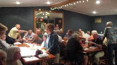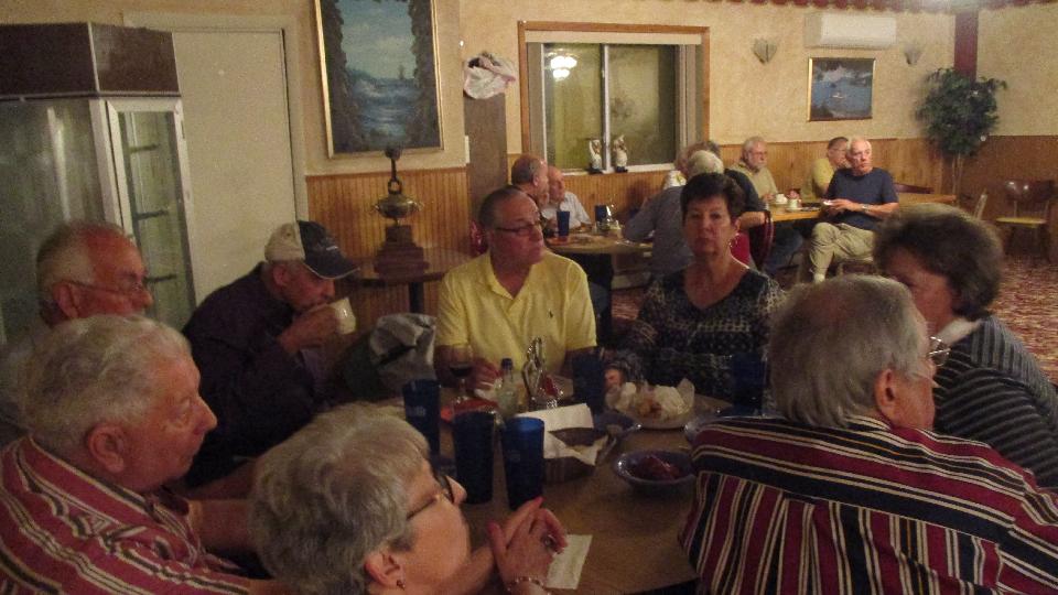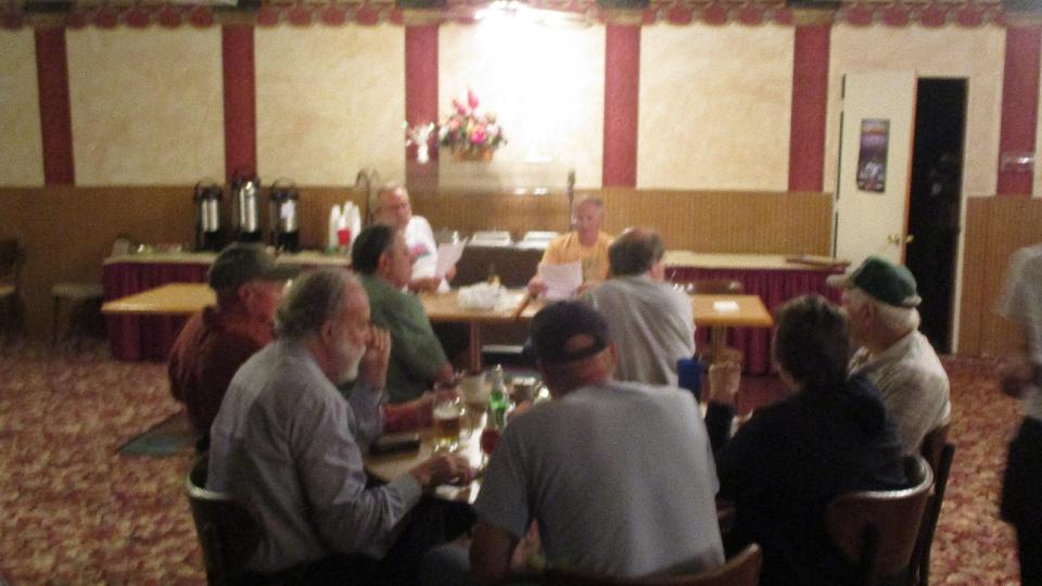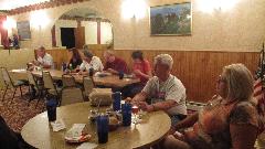 Indoors we ultimately collected about 30 avid British car enthusiasts for dinner and meeting with Brits of the Hudson, Ltd. The guru was called upon to do a few minutes about our travels and purpose, and to answer a few tech questions. By end of evening we collected a few appointments to help with some cars, but those will have to wait for a few days as we have some prior commitments.