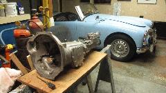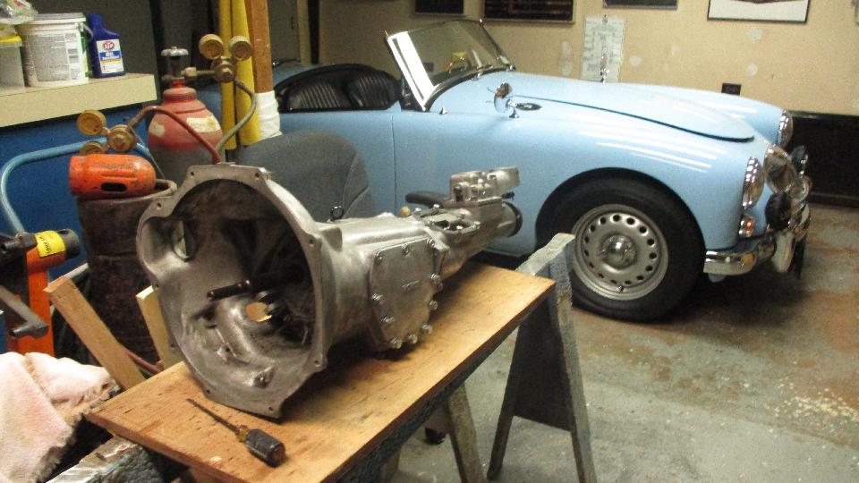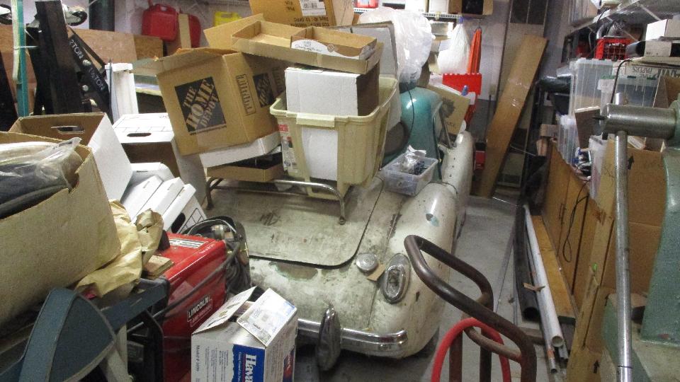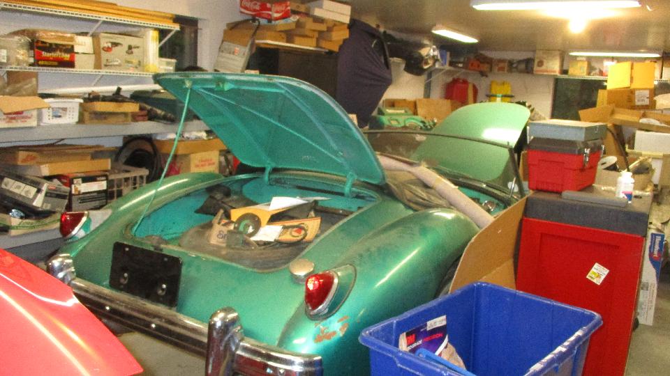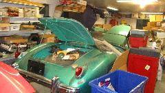 The Tyrolite Green MGA was father-in-law's car, which Steve's wife has been riding in since childhood (now being restored). Another MGA, complete but needing much attention (standing in the queue), wearing the Smoothline hardtop from the other car. Tucked back into the far corner, a Jaguar E-type which may some day be looking for a new home (with a better chance of getting refurbished). These cars are not in need of any immediate attention, so a nice visit turned into late night chat.