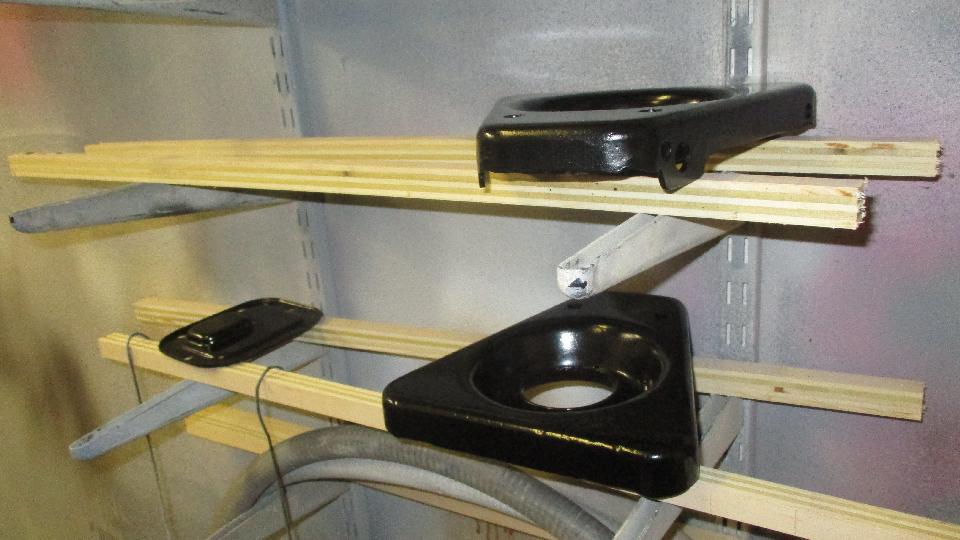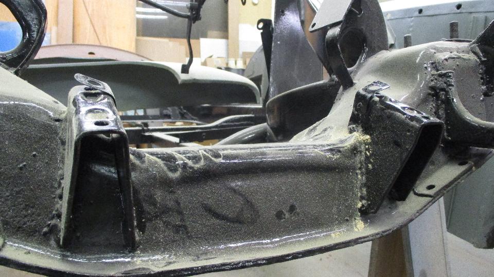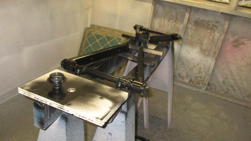 Everything underneath gets sand basted and painted. Brushed on Rustoleum primer does a nice job, and there is a paint room with filters and vents for spraying.