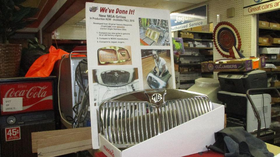 Dropped in on Scarborough Faire today in Pawtucket, Rhode Island. I was rather surprised to find the front door locked, and a sign saying they no longer allow walk-in parts orders. They will take a phone order and hold it for pick up, just ring the door bell when you get there. Inside they are very proud of their new MGA 1500 type grille, and the rest of the place is stuffed to the gunnels with tons of MGA replacement parts.