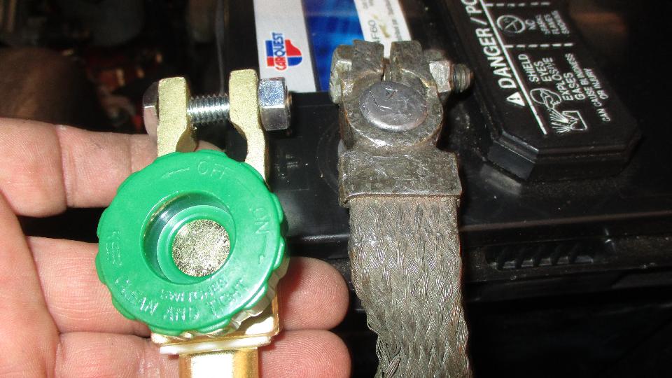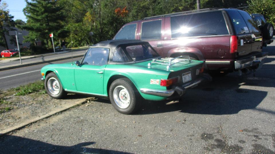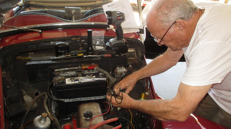 How about installing a battery cut-off switch? No go there either, as it was designed to connect on the negative battery post. We could stretch it to fit onto the larger positive post, but the ground cable clamp end could not reduce far enough to tighten onto the smaller post of the shut-off switch. Bummer. Not likely to convert this car to negative earth, but maybe consider installing the shut-off switch on the hot battery post. As the day was waning we took the TF for a short test run for evaluation. Some regular thump, bump and wobble point to need to replace the tires, which seem to be old enough to have no production date code (prior to 1990). Yeah, they're overdue. And no tail lights? Bummer. Chore for another day.