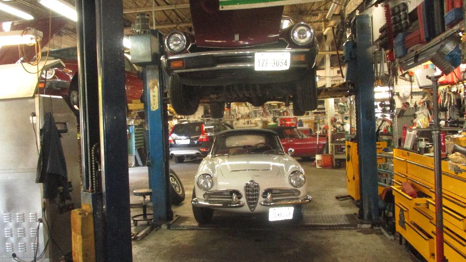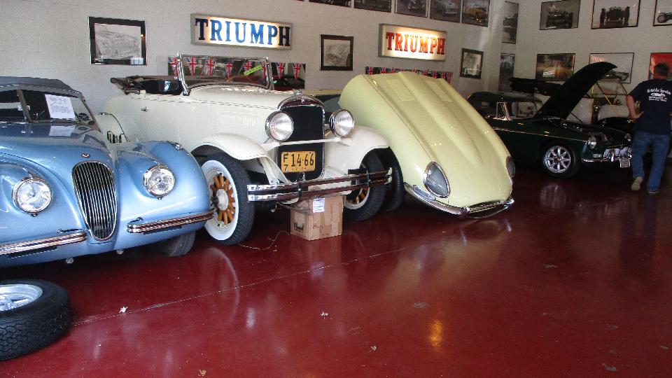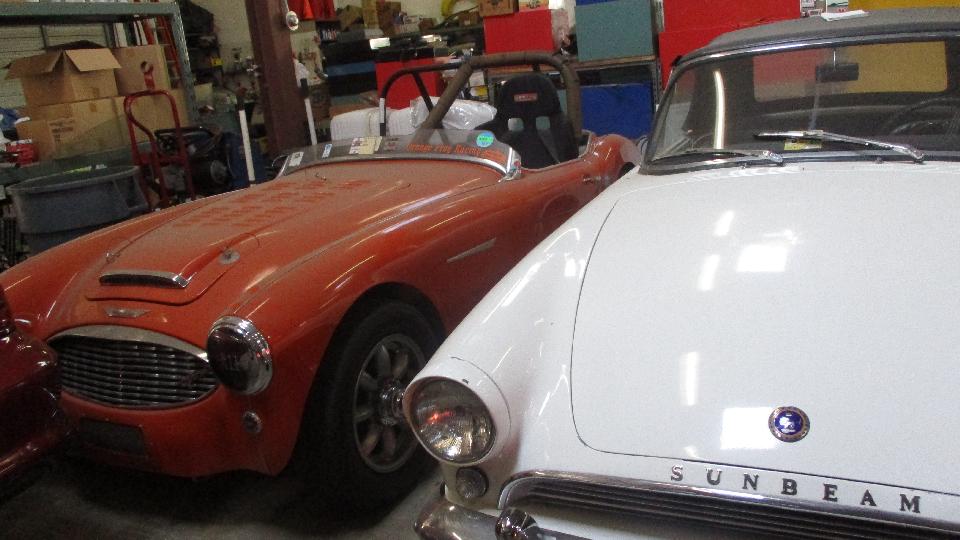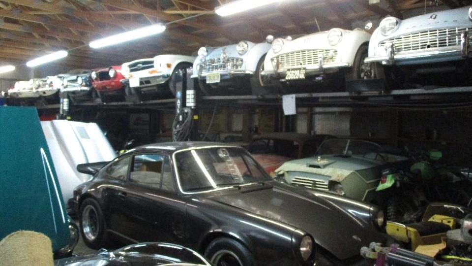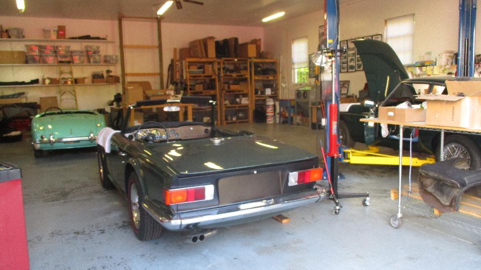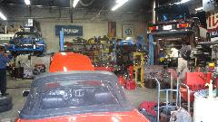 Big place with lots of personnel, things happening all over the place. Start in the show room and work back to the shop. There is a trick here to stacking three cars with two lifts. Apparently they like TR's.
