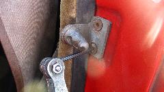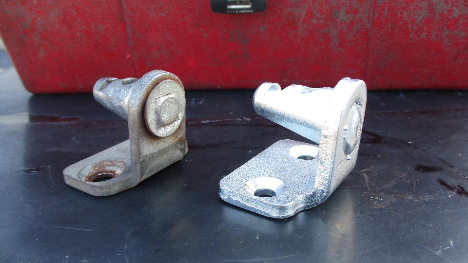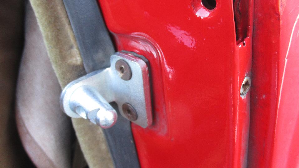 I was changing a wobbly latch striker that had been bugging me for a while. Nice they have gone back to welding the part rather than staking a thin washer to hold it together. The new one was not exactly the same dimensions, so it needed another shim or two for alignment. I wasn't finding the shims immediately, and Moss had already locked the doors after 4:30 pm, so I used a couple of steel flat washers to get it together.