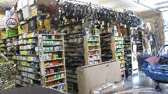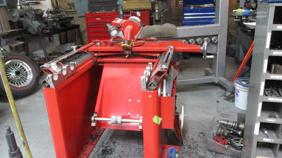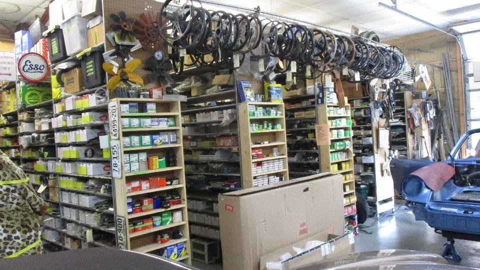 Also a parts distributor, and they have lots of New Old Stock body parts. That is a NOS rear body clip for MG Midget (in case anyone may be interested). And a tire shaving machine, because it seems current replacement vintage style tires are never round when new.