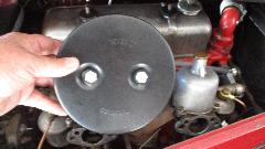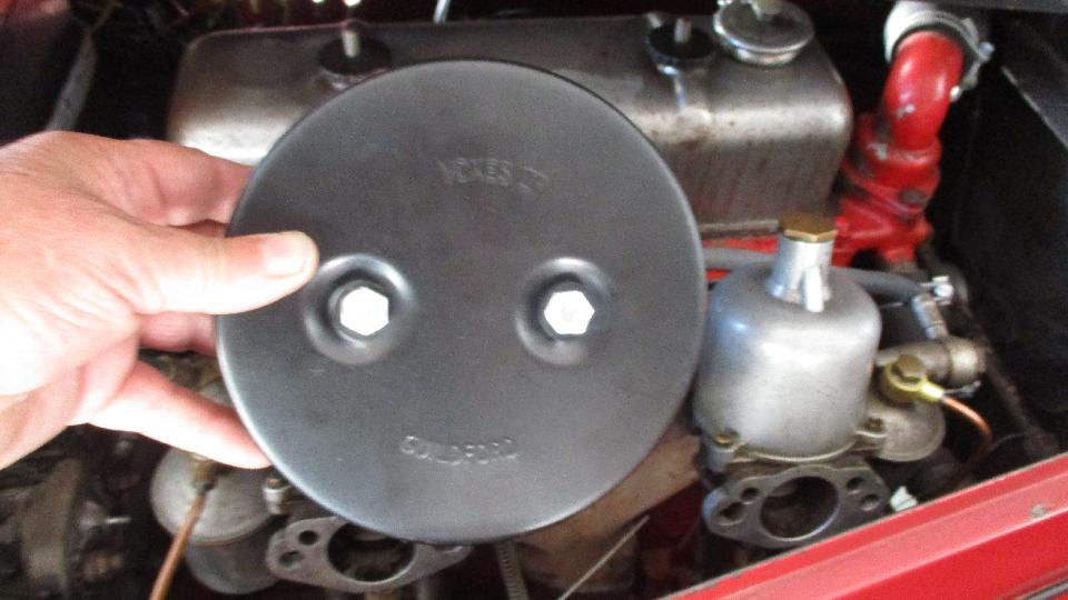 Hussling to compose our monthy trip report for the CMGC newsletter. Not quite enough time to get the photos attached when the phone calls started coming. Heading an hour south and a bit west for a return visit with Dave Daniel in Lexington, SC. Welcome is nice, but this may be a bit overboard. Time for a little follow-up work on his MG TF, as he has picked up some parts. New air cleaners first, easy enough to assemble with part in the kit, but no-go for installation for lack of the Whitworth bolts needed for attachent to the carbs. Add those to the next parts order.
