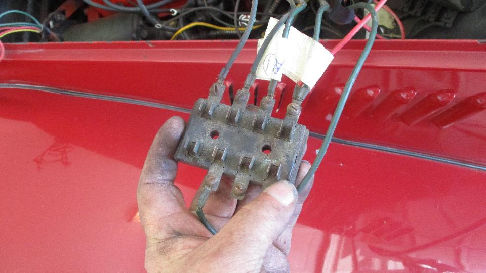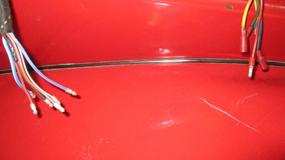 (2) We found in the TF a couple of creative design indicator lamp sockets having a spring loaded clamp for the wire connection. Neat way to connect a wire with no tools required, and real easy to transfer these fixtures to the new wiring harness.