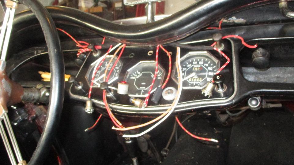 Obvious start for tomorrow is RF lighting (will need bullets), wiper motor (once we find the wiper switch and the striped wire), and the main harness at back of dash. Then on to the rear harness. Not sure if it will get done tomorrow, as everything on this car seems to fight every step of the way with slow progress.