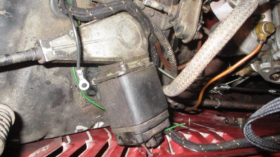 Today was the day to begin tearing into Daniel's TF. Five months earlier working on it in mid May we had nightmares over the bodged up wiring so Daniel bit the bullet and bought a new wiring harness. Today's task would be to remove the old hacked up wiring from the car. Start by dismounting the wiper motor for access to two wires on the outboard end. Some P-clips had to be dismounted, and a large number of crimped on male/female in-line connectors had to go.