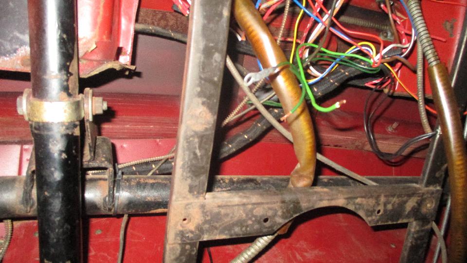 The 6-position fuse block screwed to the left side chassis brace had to go, The 4-position fuse block screwed to the left bulkhead had to go. The grounding wire screwed to the chassis number plate had to go. Pull and shove stuffing fists full of loose wires back through the bulkhead, no harness covering on any of it.