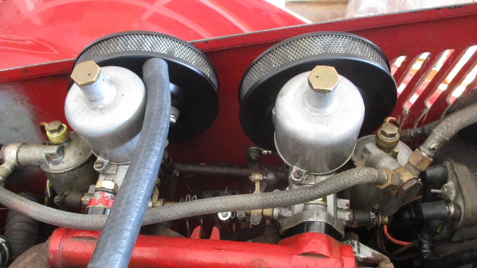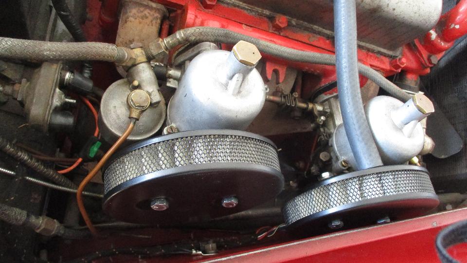 A parts order had arrived (with some Whitworth bolts), and having dressed out the front harness fairly well, we got to install the new air cleaners (beginning to get used to skinned knuckles).