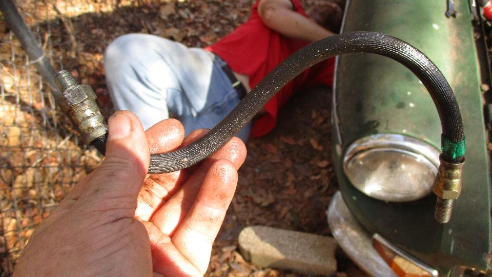Then we were installing new brake hoses, one rear and two front, all of the old ones being clogged to pass no fluid at all. After bleeding the system we then had brakes all around.